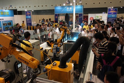 TIME shows: Welding robots, TD Series Digital welding machine, welding training simulator and welding materials in the display area.