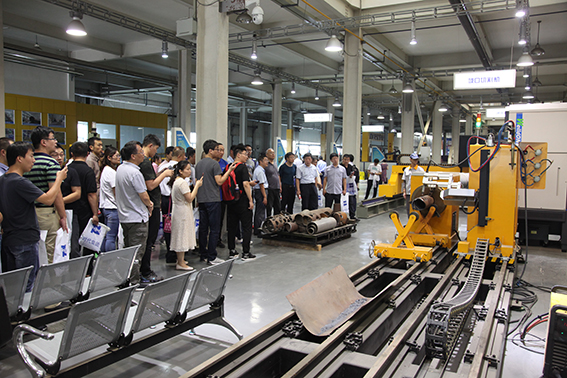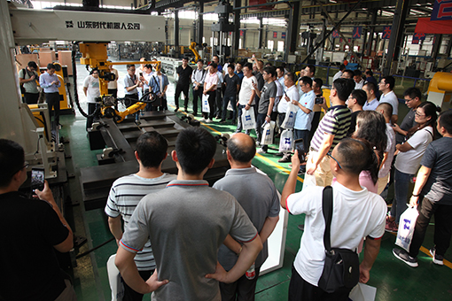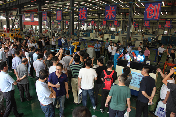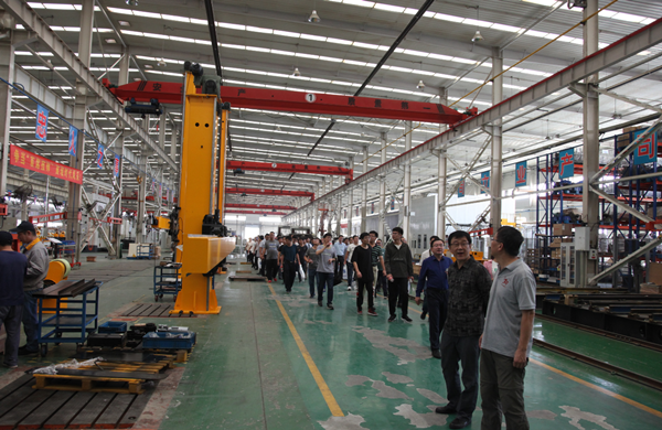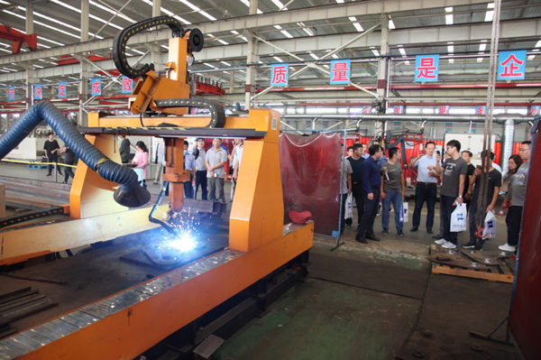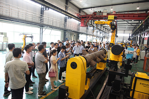 會議第一天的下午,全體代表乘車來到山東時(shí)代新紀(jì)元機(jī)器人有限公司及北京時(shí)代濟(jì)南焊接工業(yè)園參觀。時(shí)代機(jī)器人公司同仁為各位代表展示了機(jī)器人焊接技術(shù)在典型結(jié)構(gòu)件焊接中的應(yīng)用實(shí)例。時(shí)代展示的產(chǎn)品包括:相貫線管道焊接機(jī)器人、200公斤雙軸變位機(jī)配8軸聯(lián)動相貫線焊接機(jī)器人、車廂板焊接機(jī)器人、鋁合金焊接機(jī)器人等。產(chǎn)品展示中還安排了人工焊接與機(jī)器人焊接的競賽吸引眾多代表圍觀,最終機(jī)器人方以工作速度快,焊縫成形美觀等優(yōu)勢勝出。在時(shí)代焊接工業(yè)園,各位代表參觀了時(shí)代自動焊設(shè)備生產(chǎn)線及焊機(jī)裝配生產(chǎn)線,同時(shí)還觀看了時(shí)代自動焊割設(shè)備表演。通過現(xiàn)場參觀和溝通。專家們對時(shí)代產(chǎn)品有了更加全面的了解和認(rèn)識。同時(shí),他們期待著與時(shí)代公司在特種設(shè)備焊接技術(shù)方面進(jìn)行更深入和更廣泛的交流及合作。
