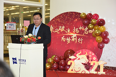 2021年牛年即將到來(lái)之際,“北京時(shí)代科技股份有限公司2021年新春聯(lián)歡會(huì)暨頒獎(jiǎng)典禮”于2021年1月29日在濟(jì)南工業(yè)園召開(kāi)。因疫情原因會(huì)議采用網(wǎng)絡(luò)會(huì)議直播的方式呈現(xiàn)。時(shí)代集團(tuán)董事長(zhǎng)彭偉民親臨濟(jì)南主會(huì)場(chǎng)并做重要工作指示。公司部分主要領(lǐng)導(dǎo)及濟(jì)南全體人員全程參與會(huì)議現(xiàn)場(chǎng)的所有會(huì)程和活動(dòng),北京及全國(guó)各辦事處人員通過(guò)網(wǎng)絡(luò)工具觀看實(shí)況直播并參與節(jié)目互動(dòng)活動(dòng)。空間的距離沒(méi)有降低時(shí)代同仁的參會(huì)熱情,新穎的參會(huì)方式令所有人耳目一新。大會(huì)現(xiàn)場(chǎng)和來(lái)自網(wǎng)絡(luò)中的時(shí)代同仁團(tuán)聚在一起總結(jié)過(guò)往,規(guī)劃和展望新的一年,大家一起度過(guò)了一段充實(shí)而快樂(lè)的時(shí)光。