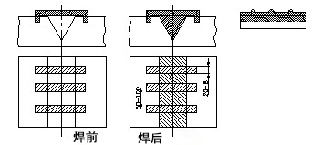 此種焊接方法主要用于工作應(yīng)力較大,工件相對較厚的焊縫,如大型機器的底座等工件。鉚釘可用碳鋼承擔(dān),焊鉚釘時可用J507焊條焊接,主焊縫仍舊用鎳基182焊條。焊接時先將坡口內(nèi)焊滿,最后焊鉚釘,使鉚釘和坡口內(nèi)焊縫形成一個整體焊縫。