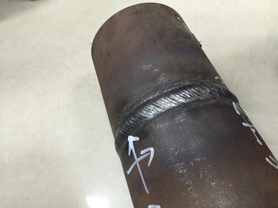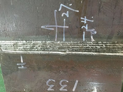 第一模塊由四組低碳鋼試件組成,10mm對(duì)接仰焊板(如圖1)、管管對(duì)接45度固定(如圖2)、16mm板橫焊(如圖3)和板立角焊(如圖4),焊接方法要根據(jù)抽簽確定,這四組低碳鋼試件中,從技術(shù)層面上講,全手工焊條焊接的仰焊板和45度管管對(duì)接焊難度較大,由于仰焊板在歷屆焊接技能大賽的賽項(xiàng)上都必不可少,所以在操作技能上各家都有所掌握,所比的是誰(shuí)家的基本功更扎實(shí),技術(shù)掌握得更到位。45度管管對(duì)接電弧焊的難點(diǎn)個(gè)人認(rèn)為有兩點(diǎn),第一是打底階段每一個(gè)接頭的處理及焊接后在保證背面成型好的基礎(chǔ)上,焊縫正面是否有較深?yuàn)A溝或焊肉下垂的現(xiàn)象,從而影響蓋面后的焊縫內(nèi)在質(zhì)量。第二個(gè)難點(diǎn)是蓋面焊接要做到焊縫對(duì)咬邊的控制,通過(guò)焊接過(guò)程中的斜拉擺動(dòng)來(lái)控制好熔池走向,使焊肉不出現(xiàn)下垂和咬邊。從本次大賽的45度管管焊的總體成績(jī)來(lái)看,由于焊接過(guò)程中允許進(jìn)行電動(dòng)工具打磨處理,所以對(duì)于內(nèi)在質(zhì)量的控制都做得還不錯(cuò),65名選手中射線探傷0分的只有8人。選手中外觀分?jǐn)?shù)丟分的較多,滿分50分中,最高得分也只有36分,可見(jiàn)該項(xiàng)目還是有一定的難度。
