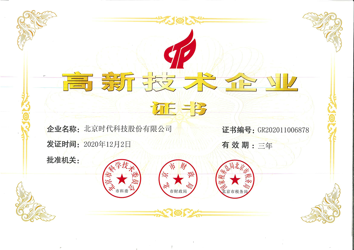 | 2020-12 | 高新技術企業證書 | 北京市科學技術委員會 |