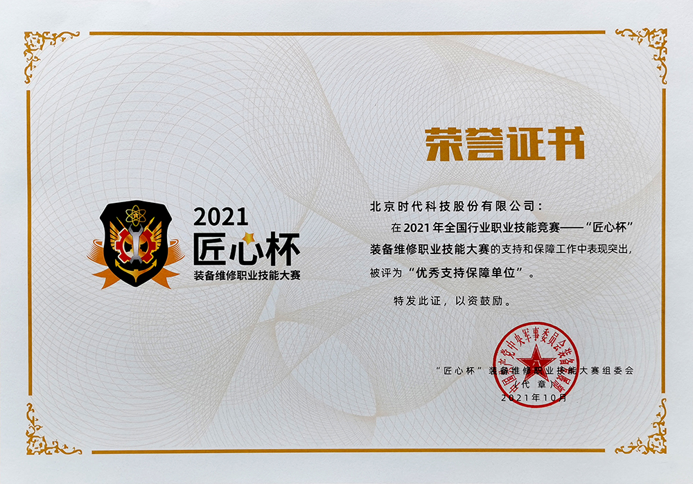 | 2021-12 | 2021年“匠心杯”裝備維修職業技能大賽證書 | 中國共產黨中央軍事委員會裝備發展部 |