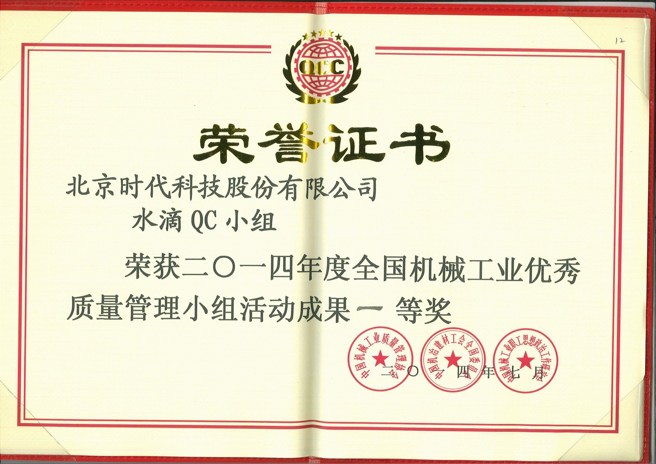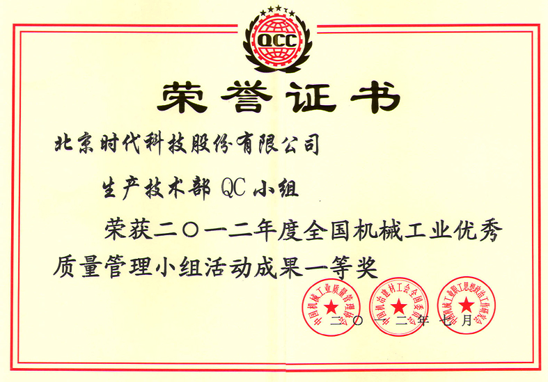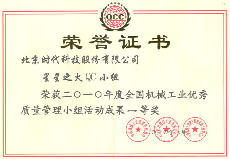 | 2010-07 | 全國機械工業優秀質量管理小組活動成果一等獎 | 中國機械工業質量管理協會 |