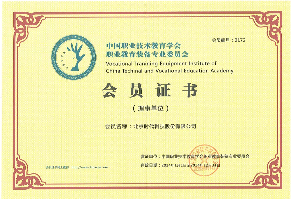 | 2014-02 | 中國職業技術教育學會職業教育裝備專業委員會理事單位 | 中國職業技術教育學會職業教育裝備專業委員會 |