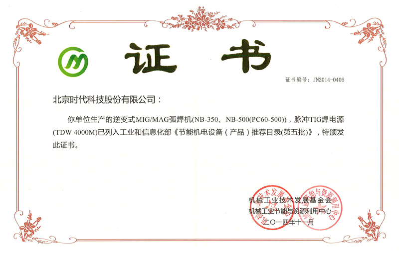 | 2015-01 | 工業和信息部《節能機電設備推薦目錄》證書 | 機械工業技術發展基金會 |