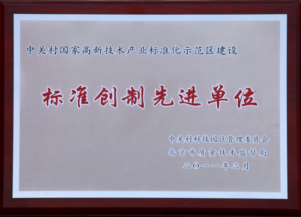 | 2011-03 | 標準創制先進企業 | 中關村科技園區管理委員會 |