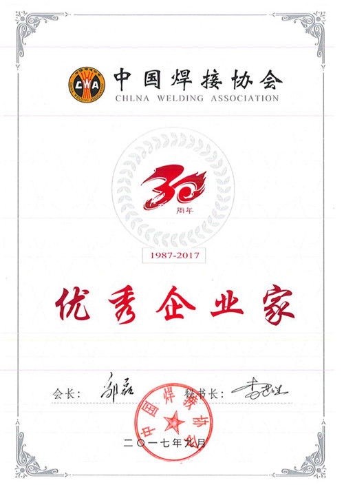 | 2017-09 | 中國焊接協會 優秀企業家 | 中國焊接協會 |