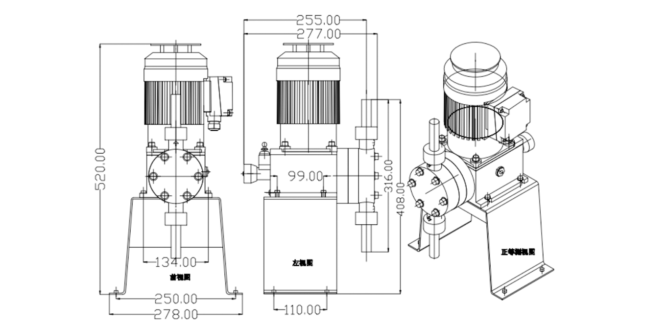 1、標配臺灣進口明椿減速電機或昇邦電機; 2、以上參數,是使用常溫零壓力清水測試值; 3、電壓有特殊要求,流量超過表中范圍,廠家可以定做; 4、重載型圖紙另詢業務部。