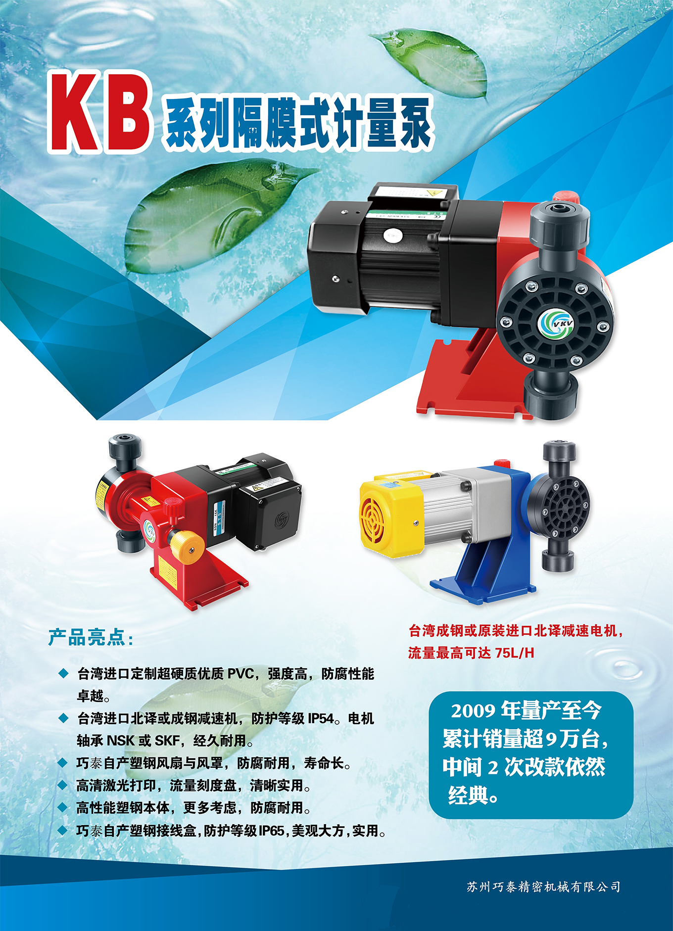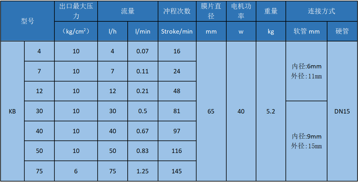 驅動方式:電機驅動,流量可達75L/H 工作條件:室內/室外 控制方式:手動方式控制調節 環境溫度:-10℃~+45℃ 介質溫度:PP 60℃,LCP 330℃ 電源:單相110V、220V電容啟動馬達;三相220V、380V感應馬達 功率:40W 防護等級:IP55