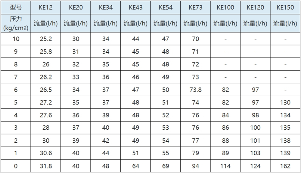 2、以上參數(shù),是使用常溫零壓力清水測試值。